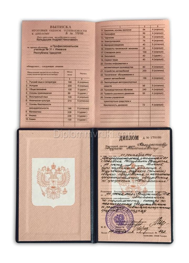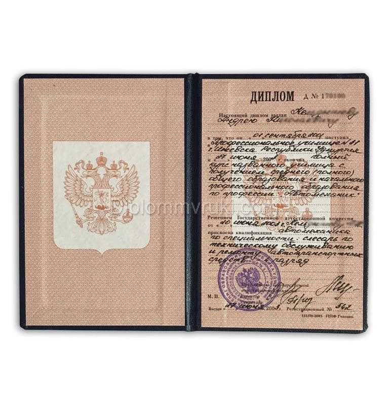 Все наши дипломы ПТУ 2005 года изготавливаются на фирменных бланках ГОЗНАКа. На них имеются мокрые печати и специальные элементы защиты, необходимые подписи должностных лиц. Чтобы все соответствовало норме документа выпускника, мы вписываем туда предметы и оценки, а также данные о прохождении практики и защите диплома. Вы сможете проверить наш документ любым доступным способом: он ничем не будет отличаться от реальных дипломов, которые получают студенты-выпускники колледжей, техникумов и профессиональных училищ. Для заказа достаточно оставить контактный номер телефона в специальном чат-окне.