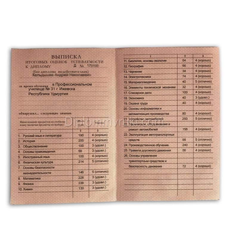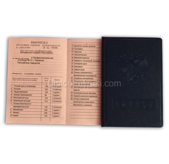 Диплом ПТУ в себя приложение с оценками и синюю корочку