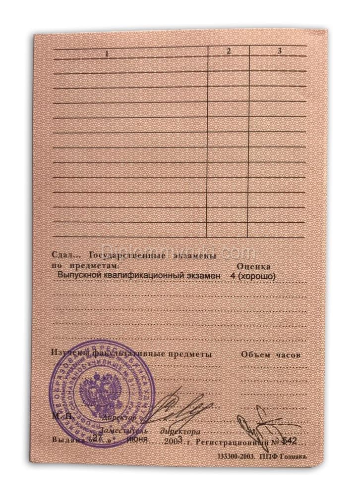 Диплом о высшем образовании с 1997 по 2003 годы Бланк Гознак