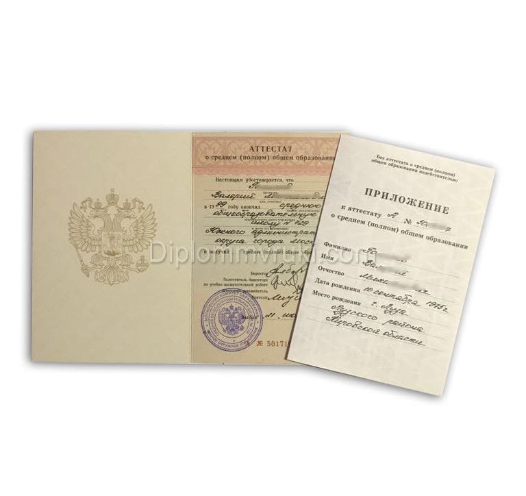 После развала СССР, начиная с 1994 года, все аттестаты выпускникам школы выдавались определенного образца. Если вы в этом году должны были закончить 11 класс, но по какой-то причине не смогли, не доучились или же просто потеряли документ, то рекомендуем купить аттестат об окончании 11 класса 1999 года. Сегодня такой документ поможет, если вы решили приехать из страны СНГ и хотите получить, например, патент для работы в России. Это позволит вам не сдавать экзамены, а сразу же получить патент по ускоренной процедуре.